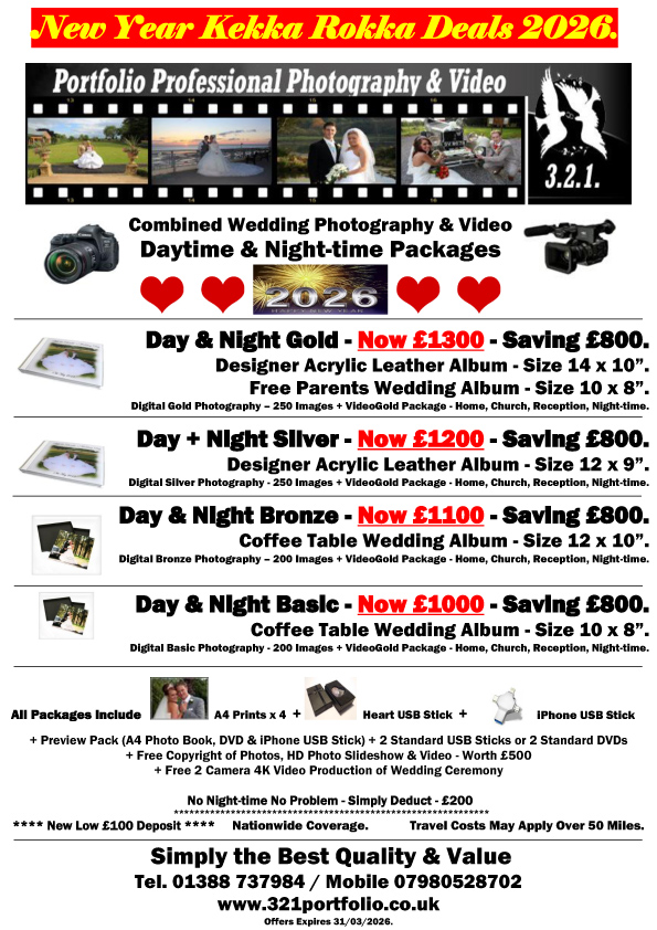 Why Choose 3. 2.1! ***** Simply The Best Quality & Value ***** ***** Free £500 Photography & Video Copyright ***** ***** New Ultra 4K HD Video & Photoghraphy ***** ***** 11pm Finish ***** ****** New Low Prices & New Albums ***** ***** 100% Reliable ***** ***** Wedding Dresses Laid with Perfection ***** ***** Family Group Shots Organised ***** ***** Nobody Has More Fun than with 321 ***** ***** Kekka Rokka! ***** Time To Book Now for Weddings 2026/27